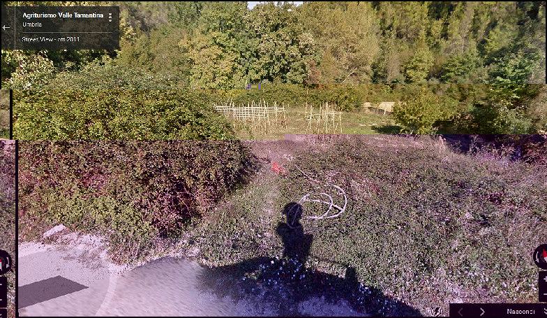 Da una vecchia foto reperita su Google Maps vi mostro come si presentava l’orto ad ottobre 2011. L’accesso aveva due vistosi cespugli di rovi a destra e sinistra e per entrare spesso ci si doveva munire di falce per farsi strada