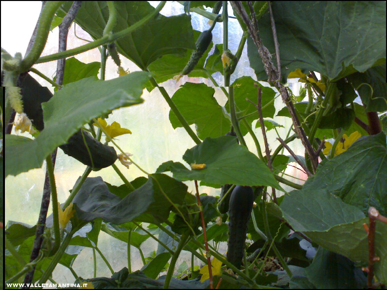 I cetrioli stanno crescendo a dismisura! Nessuno mi aveva detto che in serra avrebbero vegetato così tanto  e con foglie enormi  gli avrei dato più spazio... Allegato: