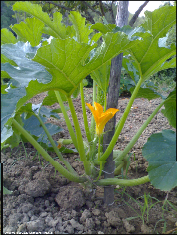 Traco, sono riuscita a legare due zucchine al palo, alla base delle piante ho tagliato le foglie più grandi e vecchie fino ad un'altezza di una decina di centimetri. Le altre sono cresciute con due diramazioni anziché una, così le ho lasciate a terra. Allegato: