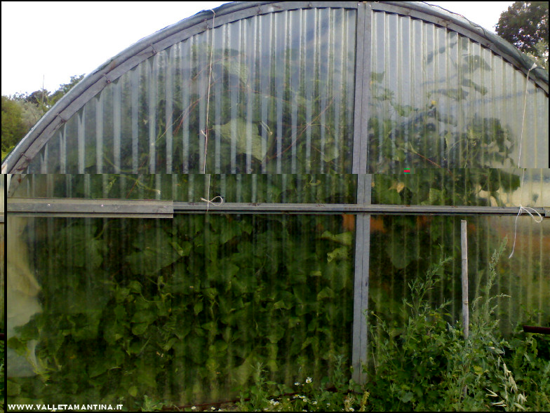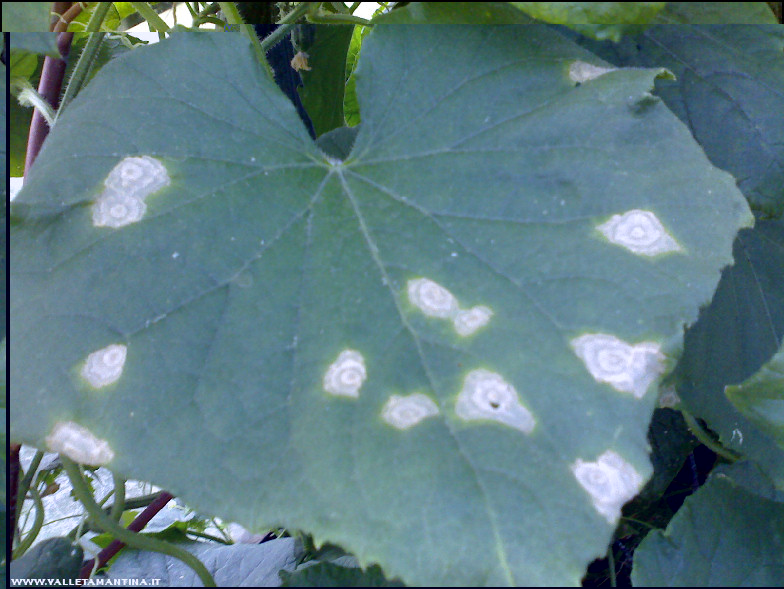 I cetrioli stanno producendo alla grande, sia fuori serra che soprattutto in serra. In serra non c’entrano più, sono usciti e si stanno allargando sulle piante al di fuori. Come si vede in foto le 3 piante sono ormai “schiacciate” contro la parete e forse a causa della moltitudine di rami, dietro hanno una circolazione d’aria un po’ limitata e su alcune foglie sono comparse queste macchie circolari, si tratta di oidio? Comunque la produzione non ha risentito di niente. Allegato: