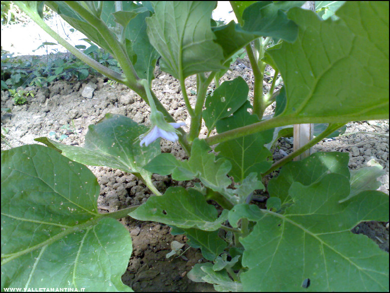 Chiudo con una nota dolente. In serra le melanzane sono diventate delle piante belle e sane, ma mi sono accorta che quasi tutti i fiori che portavano si stanno seccando e cadono. Quale può essere il motivo? La mancanza di acqua la escludo, piuttosto la troppa acqua. :roll: Ipotesi? :geek: