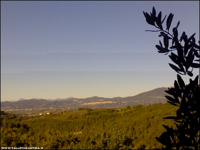 In lontananza, sulla collina del versante opposto si vede Assisi e a fondo valle Santa Maria degli Angeli.
