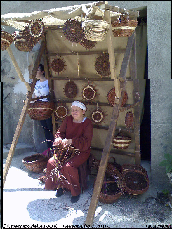ase90 ha scritto: bellissimo , mi raccomando tramandate quest'arte  La vedo dura, ma ci si prova! Scusatemi, andrò fuori tema, ma mi piace pubblicare le foto delle donne del mio paese e dei dintorni (di quelle in foto ne conosco tre) che fanno cesteria e simili. A volte sono accanto al mio banco in occasione di mercatini locali e le osservo lavorare, oppure le fotografo alla festa d’ambientazione medioevale che si svolge qui da noi a fine giugno. La maggior parte sono di una certa età, ma quest’anno ho visto anche un ragazzo (non so se è del posto) e mi sono fermata ad osservarlo mentre lavorava. Mi piace molto quest’arte di intreccio, e poi chi non ha in casa almeno un cestino, la cesta del bucato o un contenitore in vimini? Allegato: