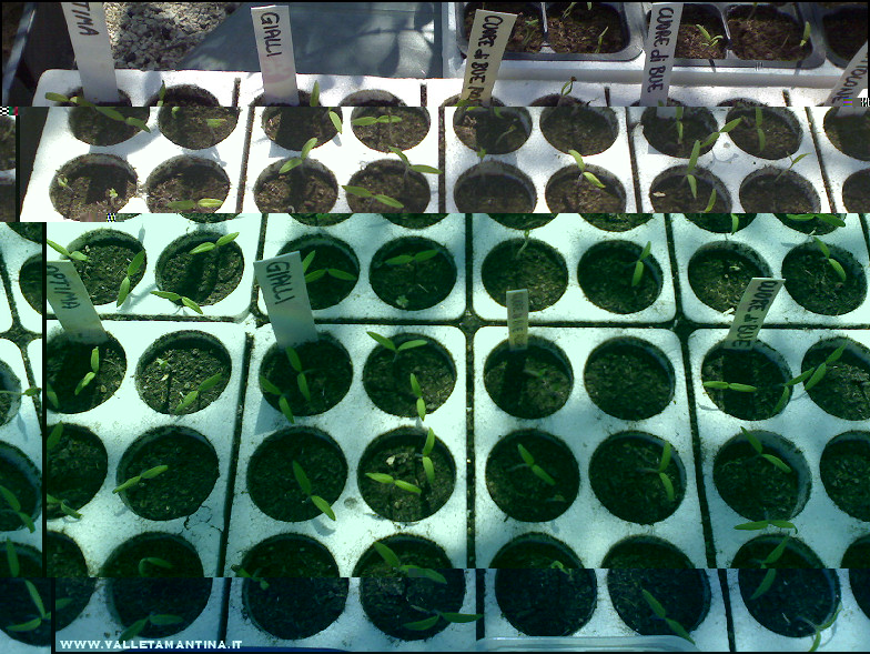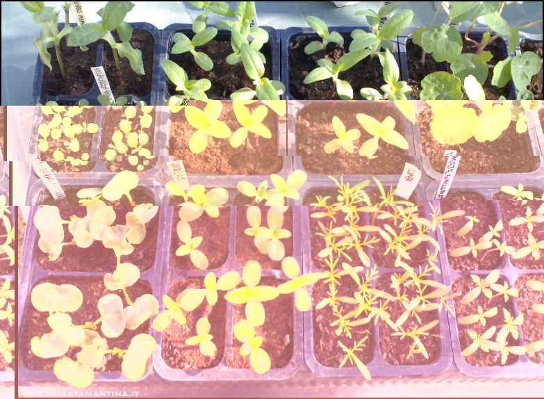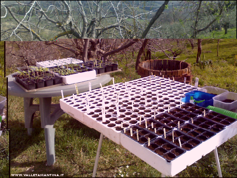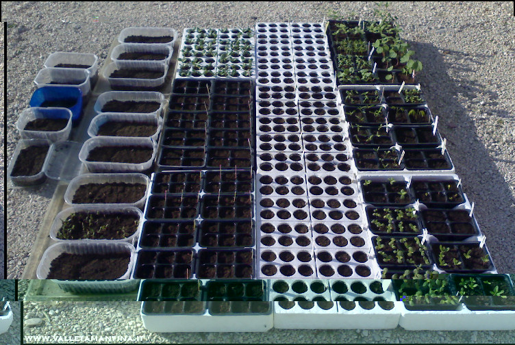 Ancora un po’ di foto. Le semine nei plateau di polistirolo e nelle vaschette, al 24 marzo. Allegato: