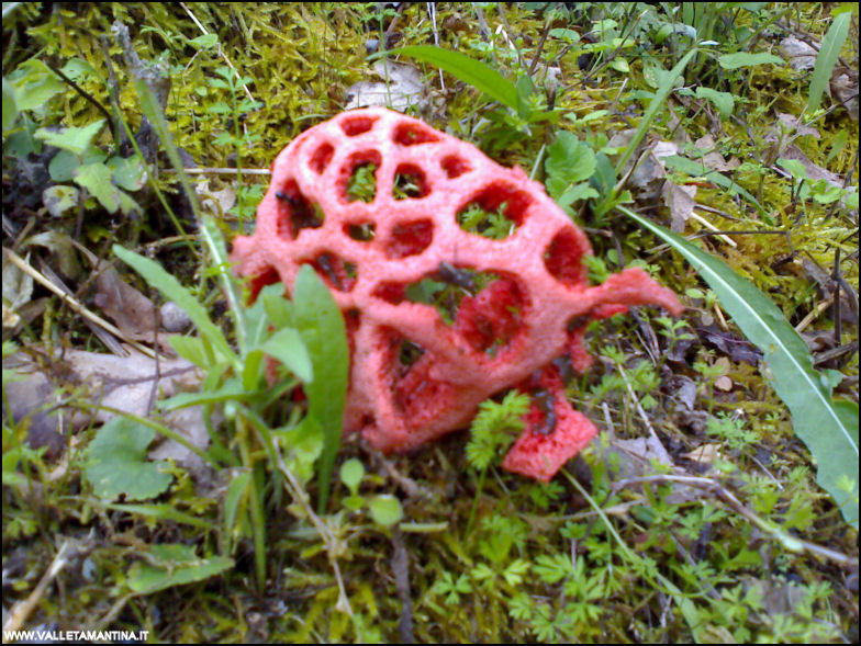 Sembra una scultura artistica, ma è un fungo (Clathrus ruber), bellissimo per quanto puzzolente.  Ovviamente non è commestibile! Allegato: