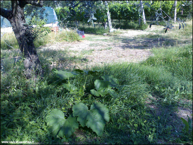 Al di fuori dell'orto, sotto ad un olivo è nato uno zucchino, è bello rigoglioso e produttivo. Viva la natura che fa tutto da sola!