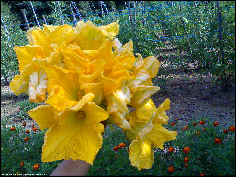 Un altro raccolto floreale. Tutti i giorni un bel bouquet di fiori di zucca. Allegato: