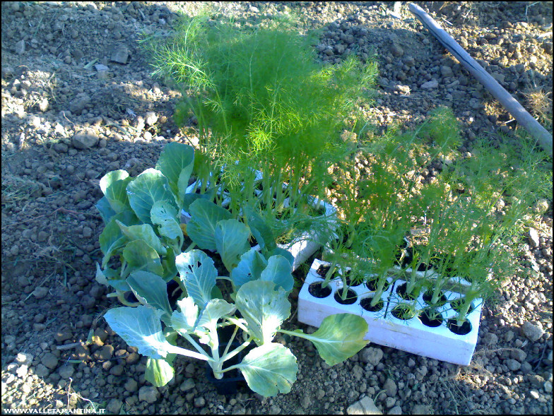 Le prime piantine da trapiantare: cavoli cappuccio e finocchi (varietà precoce e tardiva).