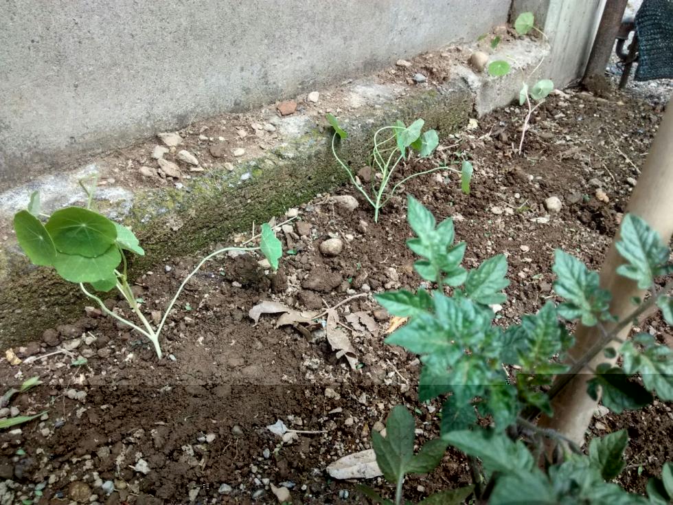 Dopo il week end di pioggia, stamattina un tiepido sole ma terra bagnata. Le uniche cose che son riuscito a buttare giù sono stati fiori, intorno alla recinzione e i nasturzi nelle prode dei pomodori: Allegato: