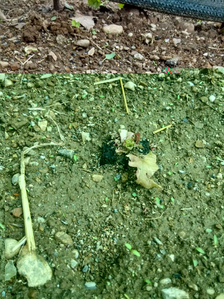 Ho trovato quattro chiocciole in una piega del tessuto ombreggiante che ho sulla recinzione, le ho spostate nel parco pubblico che ho vicino ma i danni sono già consistenti, due piantine di fagiolini sparite e questo è quello che rimane di un'insalata riccia: Allegato:
