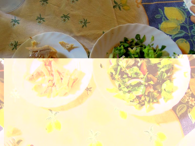 trota pescata da me. radicchi lattuga pomodorini portulaca selvatica zucchino tutto proveniente dal mio orto, il mito dell'autoproduzione, del buon selvaggio o di robinson .... Allegato: