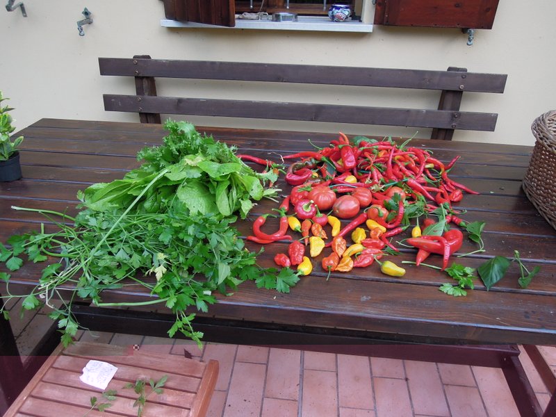 raccolto di ieri quando finirà questo caldo proverò a coprire con piccolo tunnel di plastica un po di radicchi e lattughe trapiantandole dall'ultima semina.. il vero ortolano ha sempre qualcosa nell'orto. ciao nino