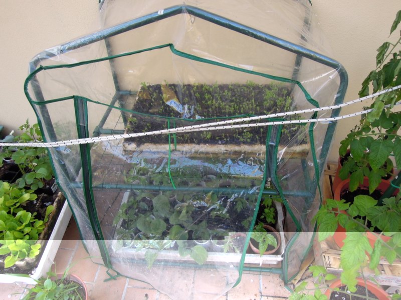 anche i pomodori e peperoni e varie sono sistemate all'esterno su lato sud per proteggerle un po' e farle ambientare alla futura piantagione. Allegato: