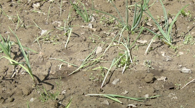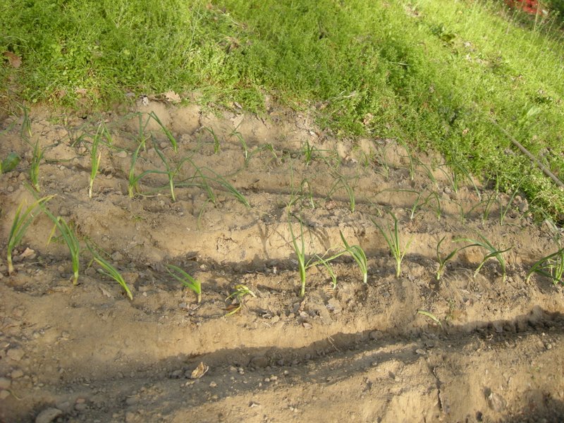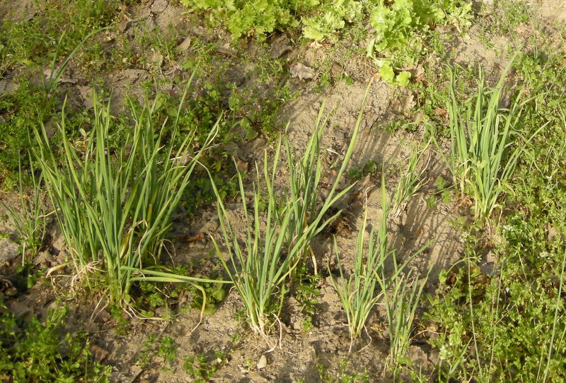 pulendo dalle erbe nella parte dell'orto trascurato dall'autunno ho trovato delle piantine di aglio nate da bulbi rimasti nel terreno,