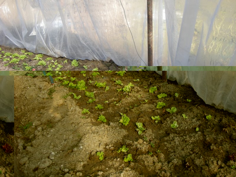 e fermato con bolcchetti di cemento. nel frattempo ho ripreso i lavori nella serra grande in cui sono sopravissute delle piantine di lattuga e cicorie trapiantate in dicembre Allegato: