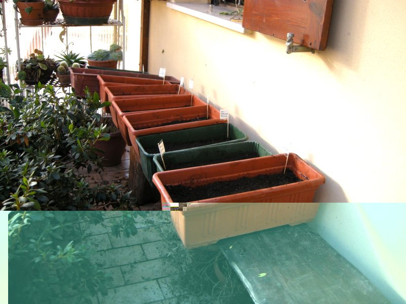 li ho seminati in vaschette e quando saranno un po cresciute le trapianterò in terra o in vasetti singoli. ho posto le vaschette contro il muro a sud ovest appoggiate su fogli di polistirolo per isolarle dal pavimento Allegato: