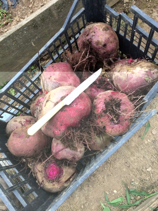 comunque....ho fatto una bella raccolta di barbabietole...guardate che bestieeeee!!!!! e i ponderosa che mi ha dato mauro iniziano a farmi capire quello che volgiono fare...certo che sti pomodori hanno un tronco pazzesco!! adesso ho ultimato la raccolta dei broccoli, insalate e radicchi e quasi finito quella delle barbabietole e coste quindi a breve mi toccherà sgomberare le prose e dare una bella fresata....e vediamo boh non ho ancora deciso cosa mettere, è troppo presto per l'autunnale penso che metterò altri fagiolini dato che ne ho messi pochi, insalata e carote...vediamoooo!!!!...sono disperato...quando vedo l'erba che c'è tra le prose mi vien male :(