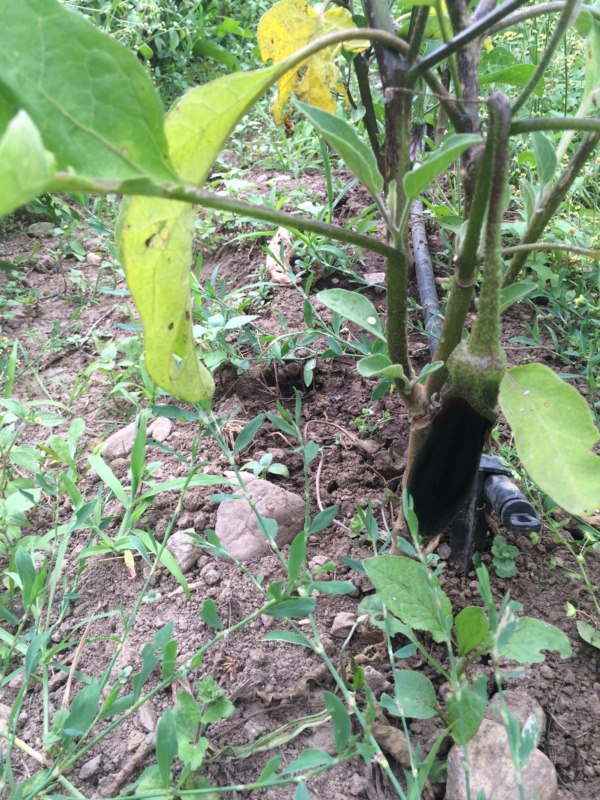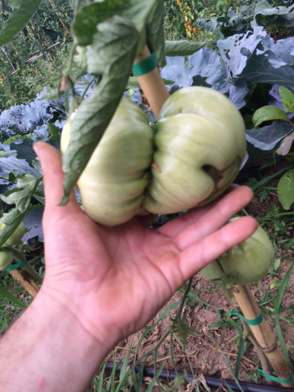 pomodoro ponderosa gigante e melanzane che pare che anche loro stiano entrando in gara