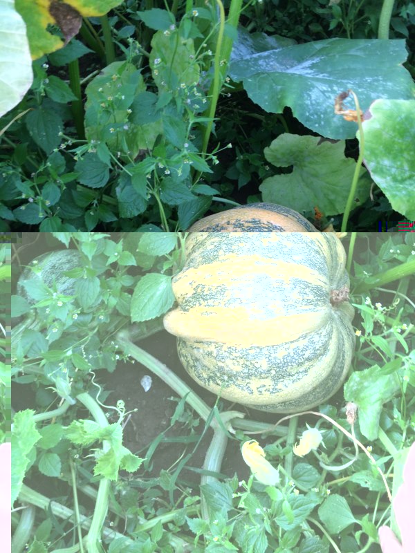 ragazziiii guardate nella mia distesa di fogliazze cos'ho trovatoooo  ce ne sono un po' queste sono le piu grosse...però boh i conti ancora non tornato...ci sono piu piante che zucceh! a meno che non siano nascoste!!
