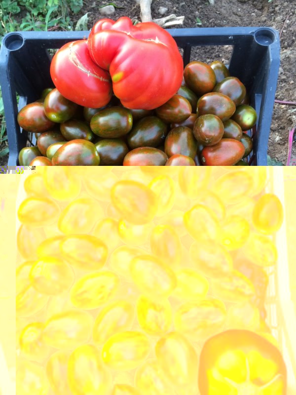 ho fatto una bella raccolta di pomodori e ho raccolto anche parecchi datterini zebrati vaaaachebelliiii....tra la'ltro all'interno sono neri!! belli dolci