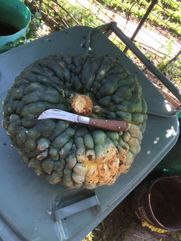 ciao ragazzi!! scusate l'assenza ma sono stato in ospedale ricoverato...per una tonsillite  tutto bene guarito e risolto! si è chioggia e tra le zucche è quella che preferisco...belle grosse, molto estetiche la scorza è verde e la polpa è bella arancione e saporita, si conserva a lungo in inverno....va bene un po' per tutto...gnocchi, risotto vellutate... questa l'ho raccolta ieri....è piu grossa dell'altra poi quando le raccolgo tutte le peserò e nominerò la piu cicciona!!  gia che ci sono metto anche un bel raccolto post ospedale