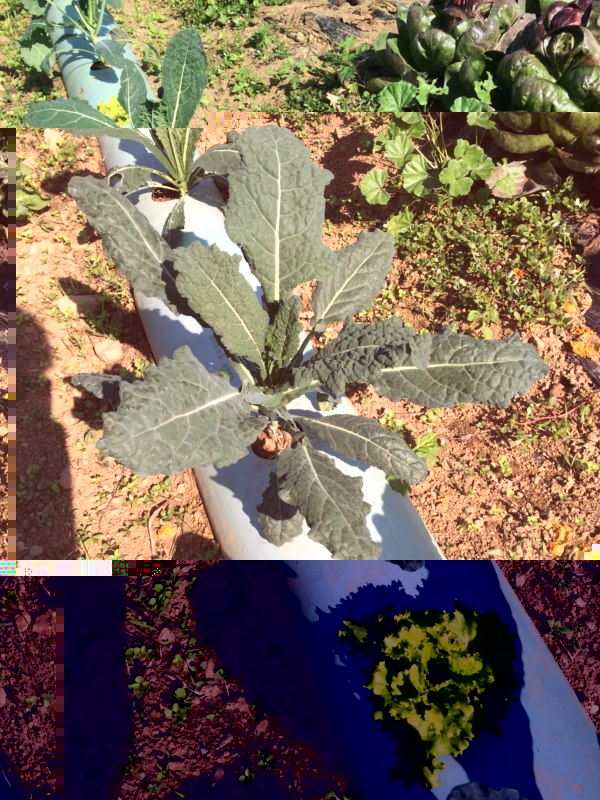 ... ma andiamo avanti....tutto cresce....queste sono le brassiche sul tunnel forato...bellisime....forti e tarchiate...cavolo nero, broccolo e cavolfiore violetto