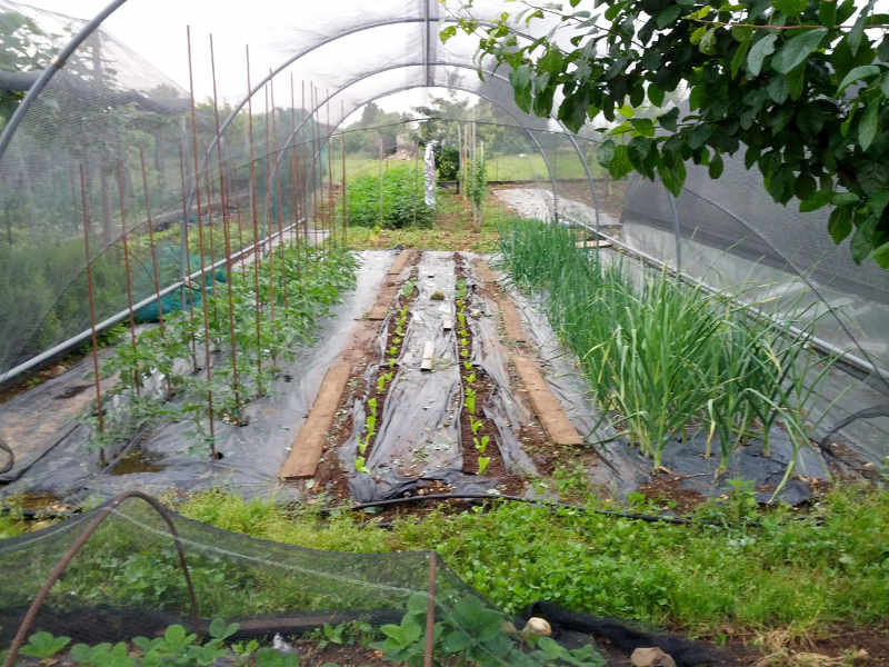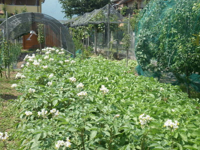 Anche se arrivo tardi vi presento qualche foto del mio orto 2013. Una parte è sotto il tunnel dotato di rete ombreggiante e lì, al riparo dalle intemperie, sta andando tutto abbastanza bene. Un'altra parte è protetta dalla rete antigrandine, con pomodori da conserva, insalate varie che hanno sostituito i piselli già raccolti e agli e cipolle. Fuori, in fondo al campo e all'aperto ho le patate, che si sono alzate un pò troppo, fagioli e zucche meloni e angurie che sono in netto ritardo sulla tabella di marcia.