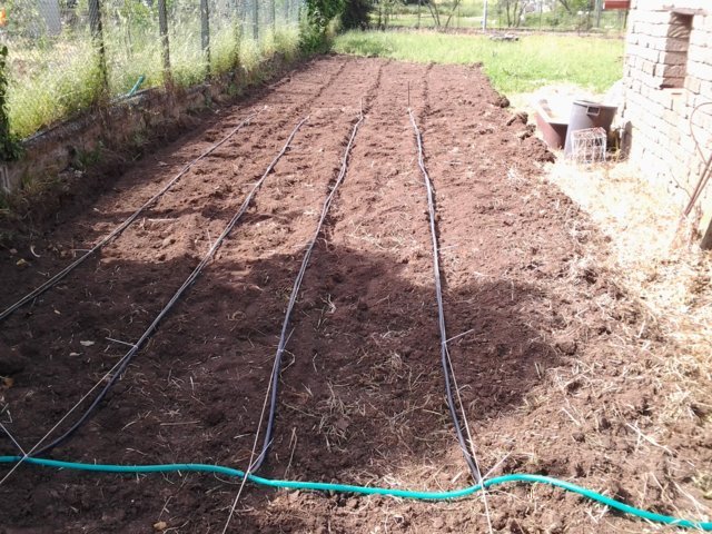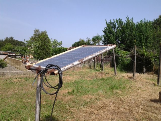 Ciao a tutti, ecco il mio primo tentativo di orto realizzato con la collaborazione della suocera (veterana) che osserva curiosa gli sviluppi. Ho posato un tubo gocciolatore e pacciamato una parte, ma ho lasciato libero un pò di terreno x l'orto tradizionale (alla suocera piace zappare !?). Ho realizzato grazie al mio hobby (l'elettronica) un sistema per tirar l'acqua in due cisterne da un pozzo artesiano profondo una ventina di metri con un pannello solare fotovoltaico da 80W, una batteria auto e un tubo in pressione immerso nel pozzo. Annaffia un tot al giorno e tutti i giorni vado a controllare se tutto procede. Vi posto alcune foto della realizzazione.