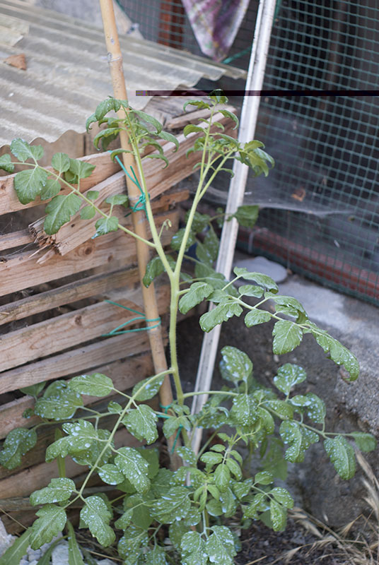 pomodoro nato vicino al cumulo del compost\letame..vediamo come si evolve visto che è nato sotto una tettoia e non prende mai sole Allegato: