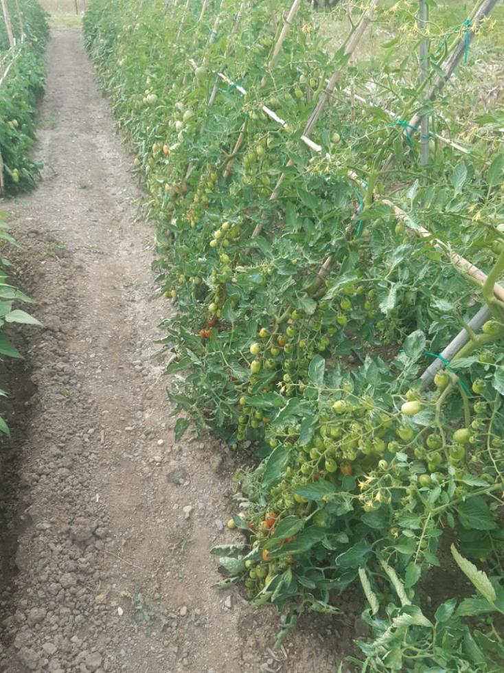 OTTIMO. vedo a terra troppo fogliame Elimina tutte le foglie ramuli dal fustino in riferimento dal piano terra fino alla 5° foglia. dai spazio e luce nelle parti basse e se c'è troppa foglia sulle piante per effetto di valori azoto della concimazione io taglierei 50% della lunghezza della foglia di alcune in modo intervallato e darai luce ai frutti. ciao