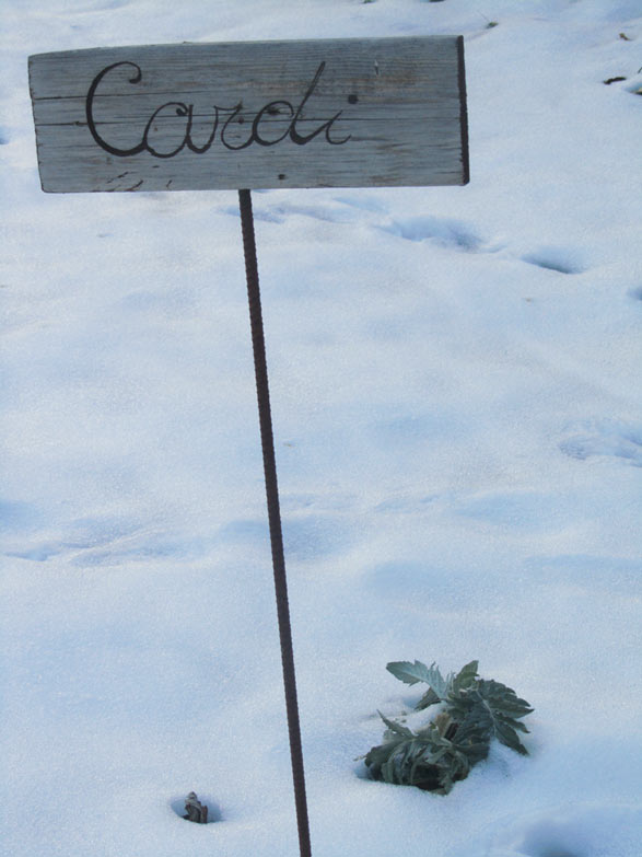 Non è molto poetico paragonare l'orto a scenari di guerra ma questo e il primo pensiero che mi è venuto, non sembrano tanti carri armati abbandonati? Non portano i segni della lotta su se stessi? Non giacciono forse ai piedi di paletti dimenticati?