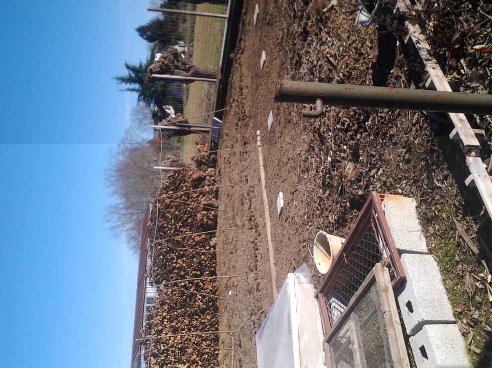 Poi c'e un bancale 1metro e 40 per 6 in cui pensavo di mettere ortaggi da radice per lo piu', in cui dopo previa aratura ho tolto 20 cm di terra, allargato 2 quintali di 'palline' di cavallo, e poi ricoperto di nuovo con la stessa terra ma vagliata finemente a mano. (lavoraccio e forse anche inutile) Ecco: