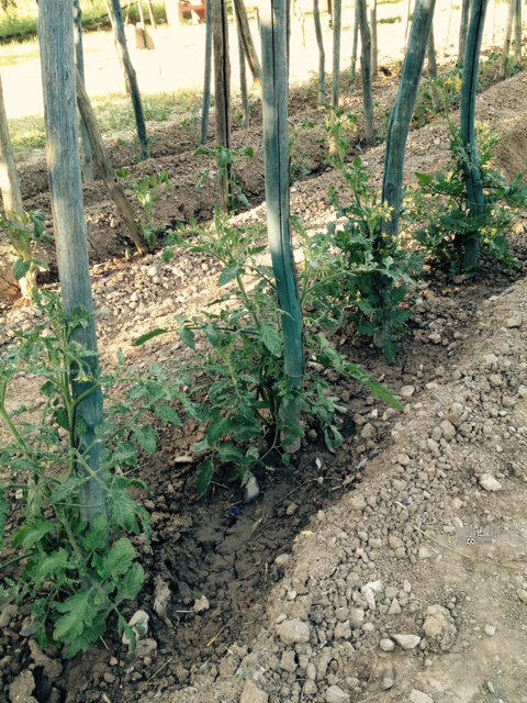 ..complimeti davvero!! una curiosità, a mè è sempre capitato di vedere i pomodori piantati sopra i solchi (sulla montagnetta di terra per capirci ) , come mai li metti all'interno dei solchi??