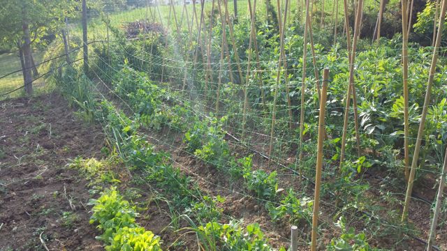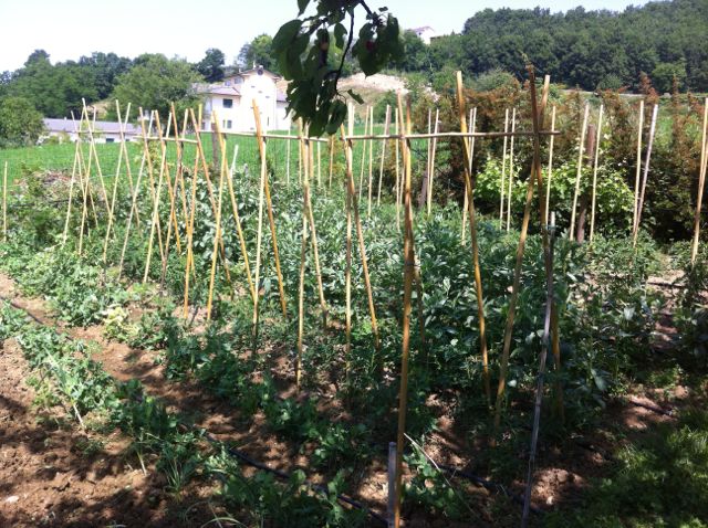 si comincia l'irrigazione, fave e piselli quasi pronti