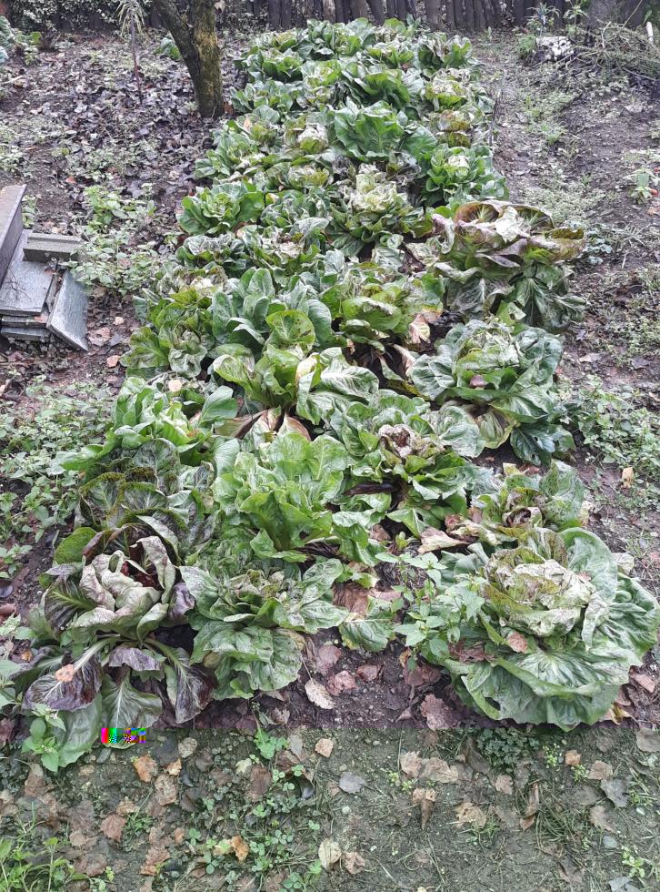 Dopo due settimane di pioggia ininterrotta.. qualche foto! Ecco quel che rimane dell'orto - cavolfiori e spinaci esauriti - cicoria variegata di chioggia - finocchi da raccogliere - cicoria bianca invernale e pan di zucchero. Il prossimo fine settimana provvederò a coprire con del cellophane le insalate, creando minitunnel - anche se non credo di averne abbastanza per coprirle tutte - visto che daranno minime intorno ai 3/4 gradi. Intanto spero in una settimana di sole così che si possano asciugare un po' altrimenti ho paura che una volta coperte marciscano. ciao a tutti Allegato: