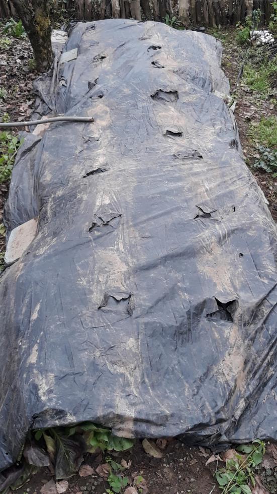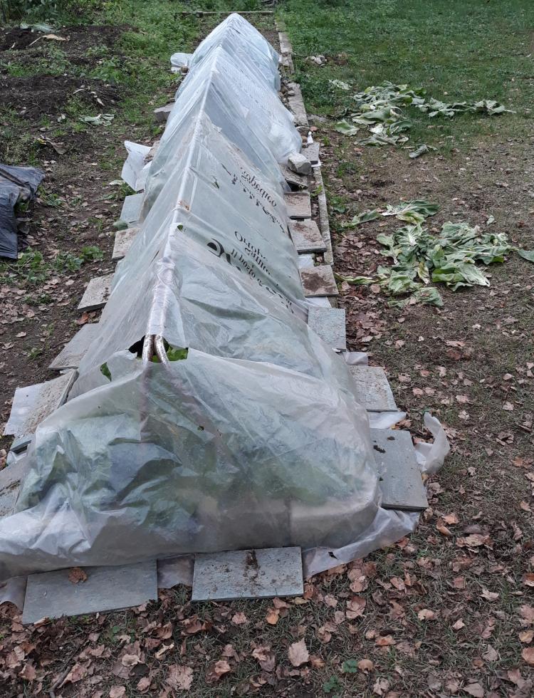 tunnel per cicoria realizzato con pezzi di cellophane recuperati qua e là