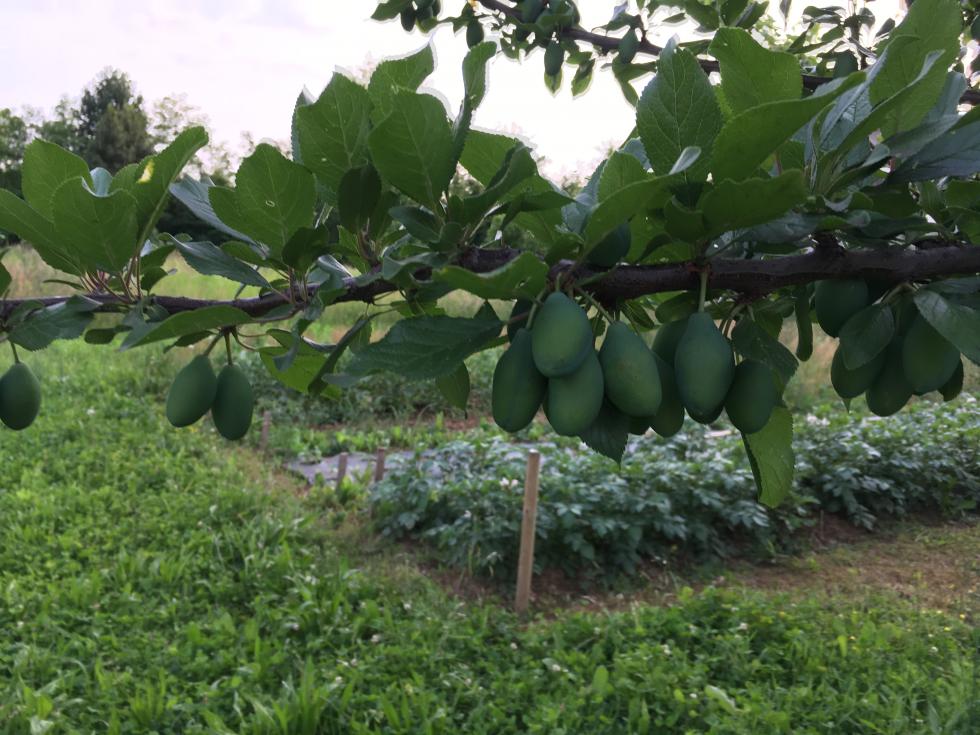 Attento che con la pianta di pesche stai rischiando , se non fai un paio di trattamenti autunno/ inverno potresti perderla. le susine andavano sfoltite appena dopo l' allegagione ,ormai è tardi e ti conviene tenerle.