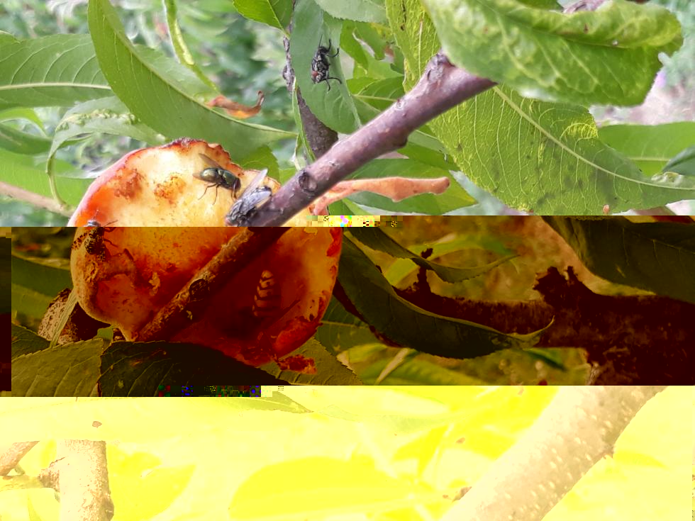 le vespe hanno iniziato a svuotare sia le pesche che le pere precoci , se si limitano a qualche frutto lascio stare ma attenzione a quando si va a cogliere la frutta , il buco è sempre dalla parte opposta da dove siamo noi
