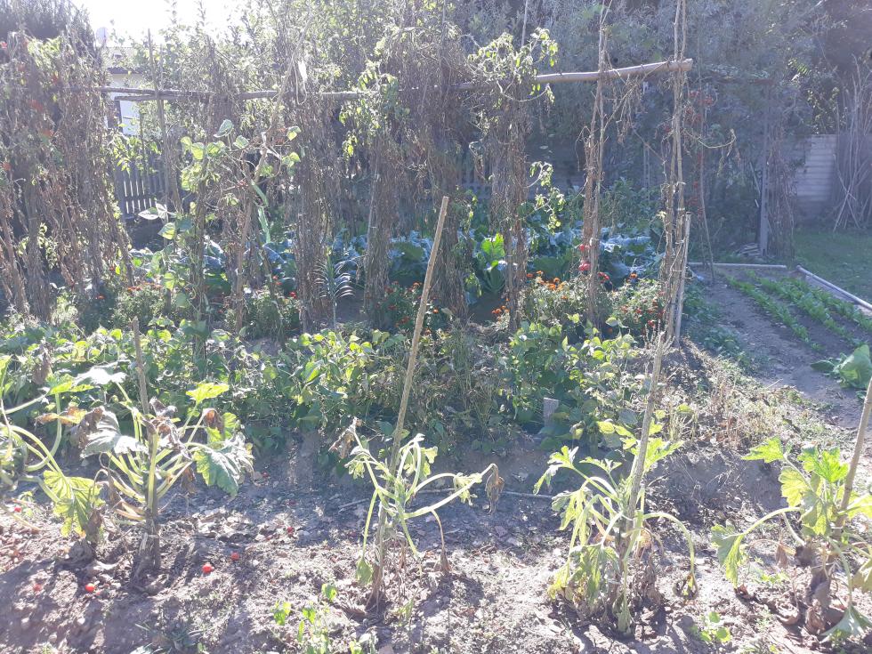 1) nella prima foto quel che rimane dell'orto estivo: pomodori, cetrioli sono seccati completamente. Anche le zucchine della seconda semina sono ormai esaurite cosi come i fagiolini. 2) poi cavolfiori - ho trovato molti bruchi su una sola pianta ma credo di averli fermati in tempo. 3) finocchi e insalata da taglio seminati al posto delle patate. 4) spinaci..
