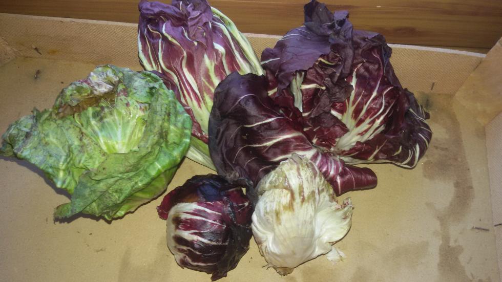 Nell'orto sono rimasti solo i radicchi.. nonostante io non li bagni da settembre e sono coperti nel tunnel con le temperature che arrivano a -5 sono ghiacciati tutti e qualcuno qua e là inizia a marcire... meglio accelerare la raccolta