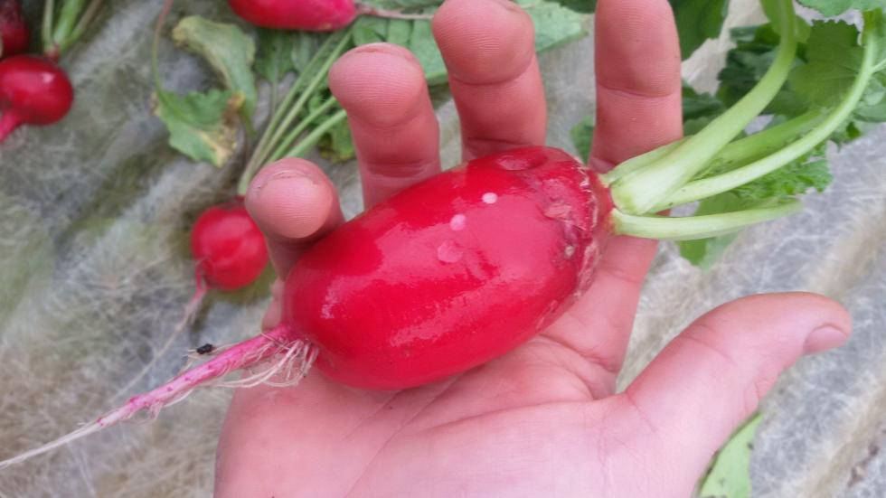 Oggi vento freddo e fortissimo...ha scoperchiato una parte dell tunnel e ci ho trovato dei ravanelli che avevo reminato a spaglio qua e là tra i radicchi... grossi come rape  raccolto parte del sedano imbiancato