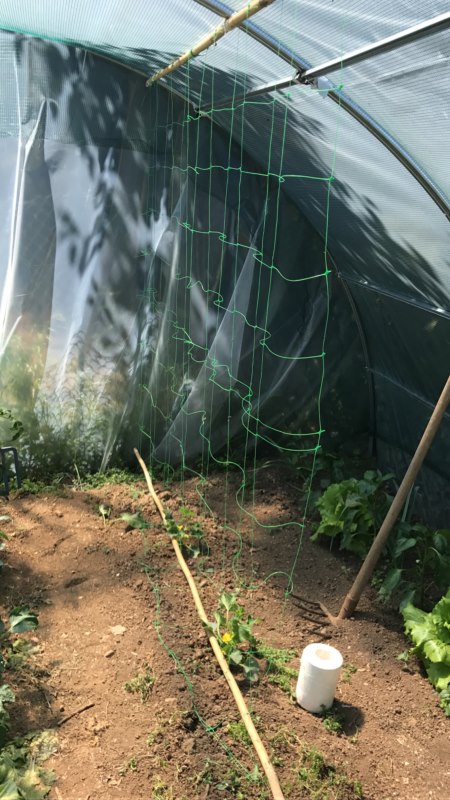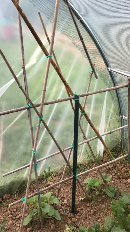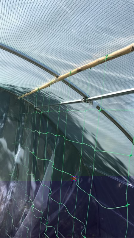 no carmen non è scura... è un po' rossa.. credo sia menta glaciale... quando ricresce vi mando qualche foto.... allora... meno male che ho un po' ripreso!!... non che avessi mai mollato  tanto per cominciare ho messo i sostegni per meloni e cetrioli in serra! di 2 tipi... uno fatto tutto con le canne legate dove arrampicano i cetrioli... uno fatto con la rete attaccata al soffitto.. per i meloni.. la logica è che la pianta del melone si arrampica e appena il melone si fa un po grosso gli faccio un cappio attorno al picciolo e lo appendo all'asse superiore... pensavo di mettere anche un traverso a metà rete giusto per dargli un po piu di forza alla rete