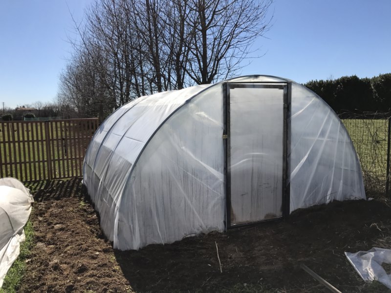 4x4,5... tetto interno con un telo semi ombreggiante per sostenere un po' il telo durante la grandine... visto che serramenti?? meglio di casa mia!! in legno, passato tutto con la catramina e la porta chiusa con il polietilene e non con il telo.. per questioni di tenuta... il telaio della porta o il cardine non erano perfetti... la porta faceva fatica ad entrare.. però ho risolto tutto