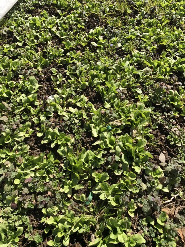 si beh quello che vedete è solo un pezzo del filare di piccoli frutti... poi ve lo farò vedere bene!!... poi.. cos'abbiamo qui?? ecco! la roba non floreale che ho piantato in ottobre!! ho giocato in anticipo!! in ottobre ho buttato giu piu che in primavera!!  aglio, spinaci e zuccherina di trieste