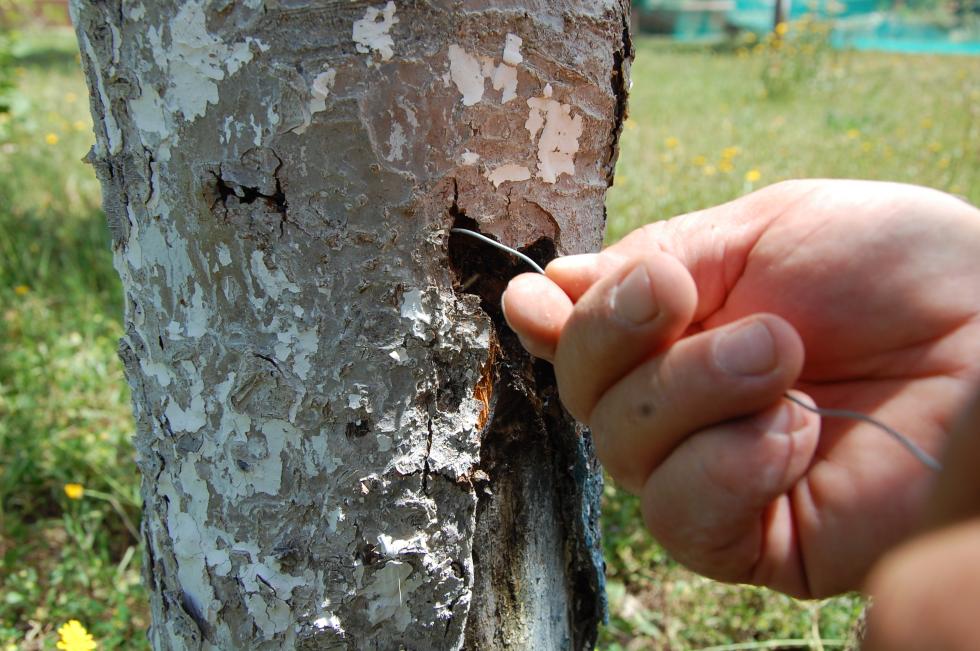 Ciao nick … ecco il mio rodilegno … L’anno scorso l’ho scavato da un melo grande (seconda foto). Quest’anno da un melo piantato nel autunno. Sul giovane melo ha fatto danni notevoli, ma sembra che si riprende … Comunque, funziona solo il fil di ferro … Allegato: