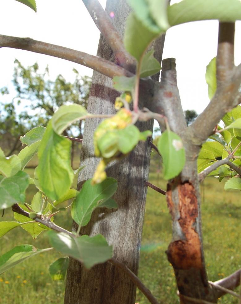 L’anno scorso l’ho scavato da un melo grande (seconda foto). Quest’anno da un melo piantato nel autunno. Sul giovane melo ha fatto danni notevoli, ma sembra che si riprende …