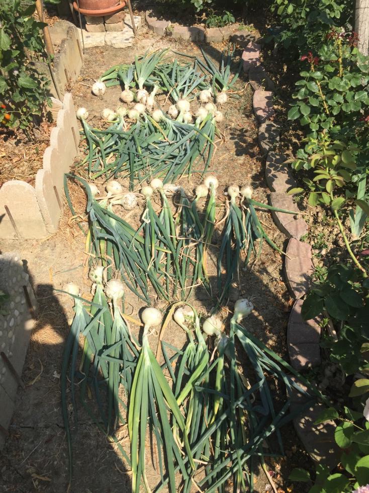 Le cipolle bianche invece mi sembrano venute bene, adesso le lascio un po’ seccare e poi intreccio pure quelle