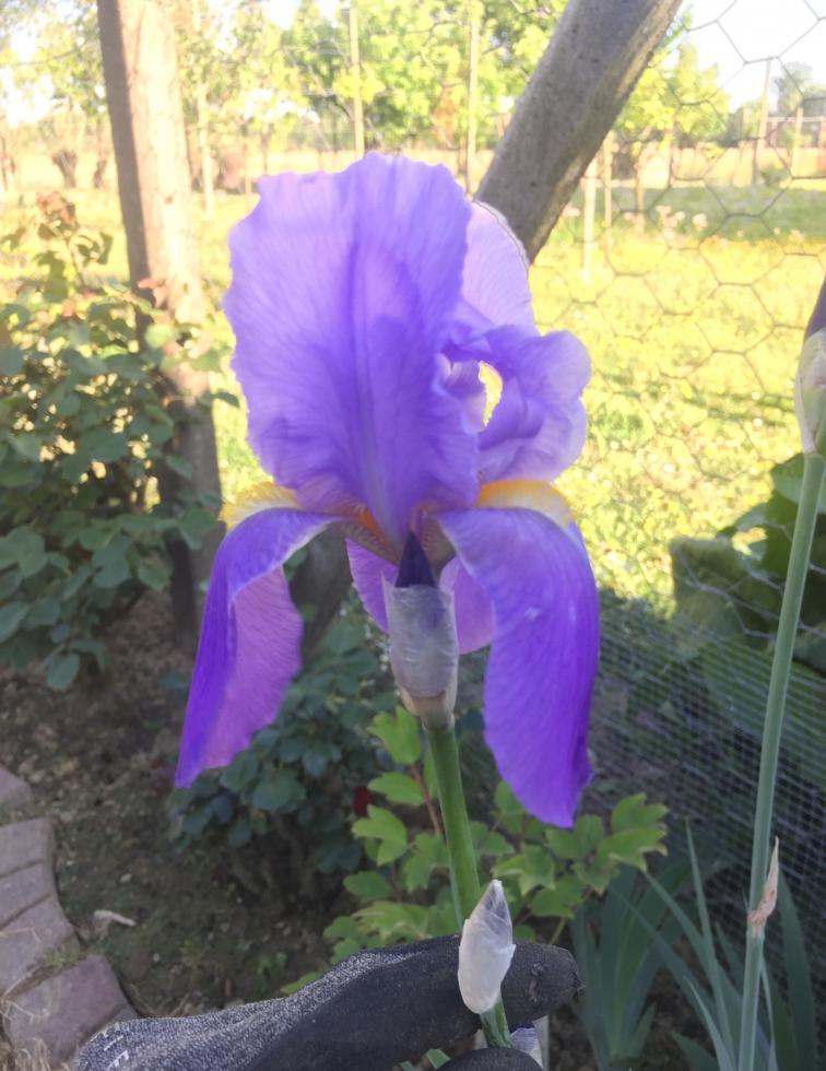 Non di solo orto vive l’uomo, ma ci sono anche i fiori e gli animali, in particolare un Iris piantato lungo la recinzione del mio orto, i coniglietti appena liberati nel recinto perché possano saltellare felici e mamma oca che cova le sue uova