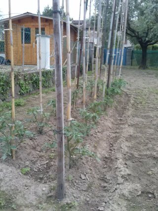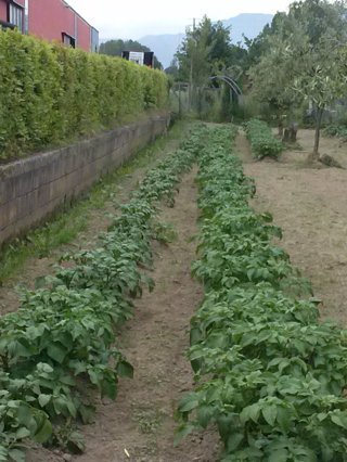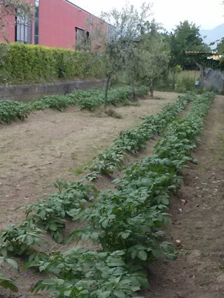 un bel pezzo di terreno meta patate e meta orto .intanto come dicevo piantati pomodori peperoni . zucchini e fagioli . il tempo pero nn e buono e aspetto un po x mettere altre cose ,,,come insalate fagiolini stortini montatori, melanzane prezzemolo basilico .poi la mandata piu grossa di pomodori verso giugno x uso di conserva inverno