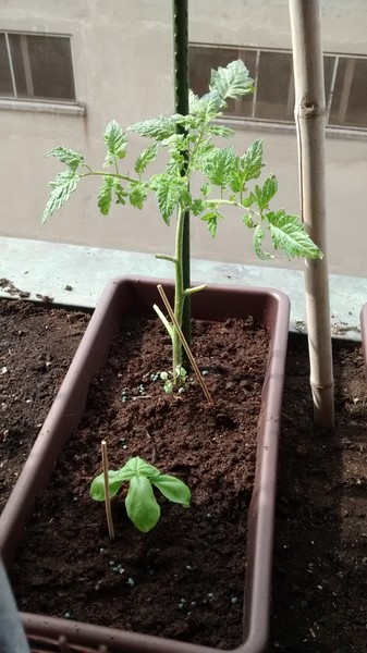 Intanto vi posto le foto dei pomodori comprati piantati con basilico nei vasi sul balcone: Allegato: